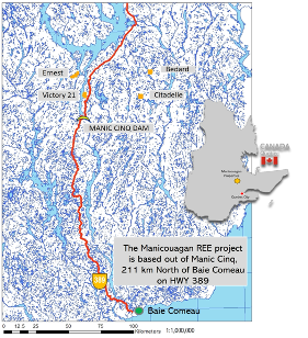 All three properties are underlain by metamorphic and igneous units that are cut by younger pegmatites. It is unclear if the anomalous REE values are associated with the Manicouagan impact event.