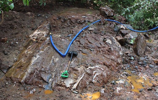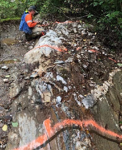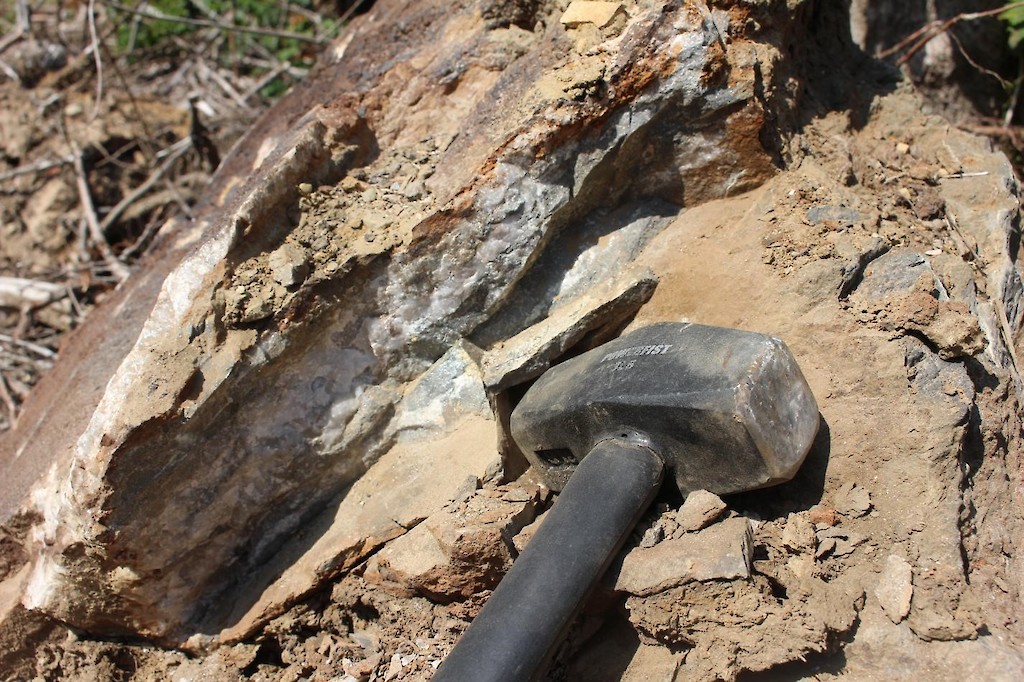 Property prospecting has revealed large, angular, pyrrhotite and quartz mineralized boulders on a new logging road. The boulders are associated with a major northeast-southwest trending linear feature on the property and a coincident resistivity low from an airborne survey done by Lacana in 1988. Samples were collected and will be analyzed to determine if there are any metals of interest associated with the mineralized boulders. This represents a new, previously unexplored target on the property and will be followed up during Phase 3 exploration planned for September.