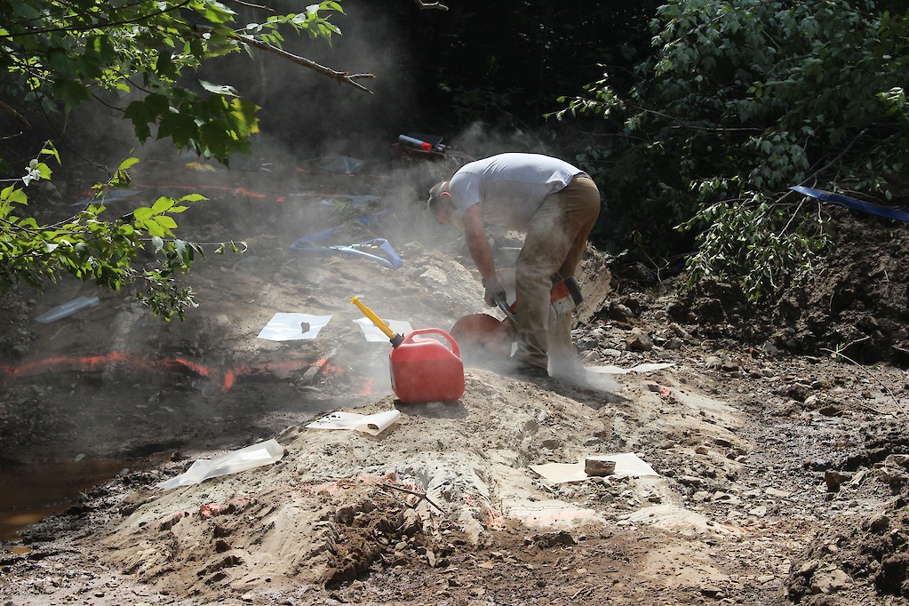 Subsequent prospecting on the property has also revealed large, angular, pyrrhotite and quartz mineralized boulders on a new logging road. The boulders are associated with a major northeast-southwest trending linear feature (Carp River Fault) on the property and a coincident resistivity low from an airborne survey done by Lacana in 1988. Samples were collected and are being analyzed to determine if there are any metals of interest associated with the mineralized boulders. This represents a new, previously unexplored target on the property and will be followed up during Phase 3 exploration planned for September.