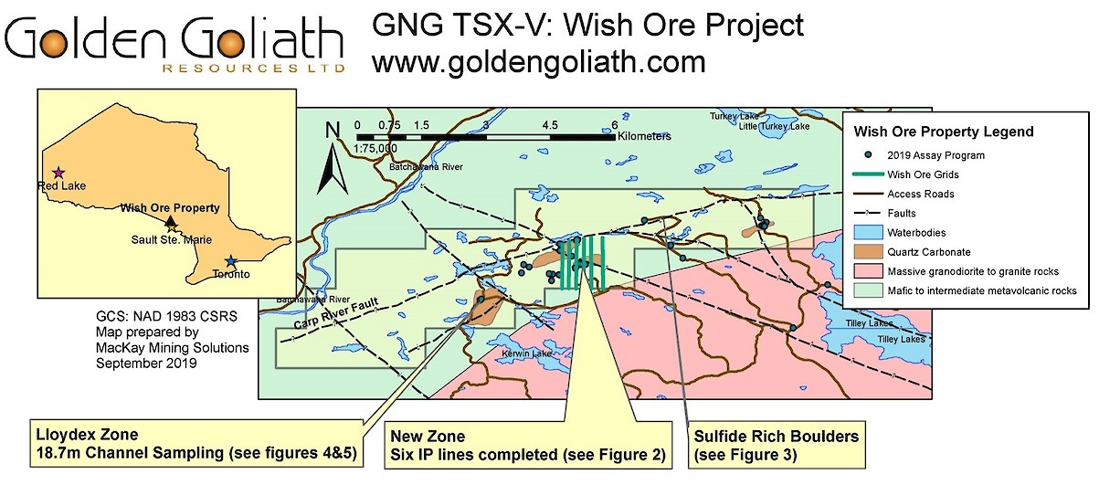 Company CEO Paul Sorbara says, “We already have multiple drill targets on the Wish Ore property and there is still a lot of potential to be evaluated. One of the Induced Polarization targets covers an area with Iron Formation and needs to be prospected, sampled and possibly stripped in that area. The trend of the nearby Carp River Fault needs to be thoroughly examined. Between the exciting results on our Kwai and SLF properties in the Red Lake area August 27 GNG Press Release and now Wish Ore near Sault Ste Marie, there will be a lot of drilling in our future.”